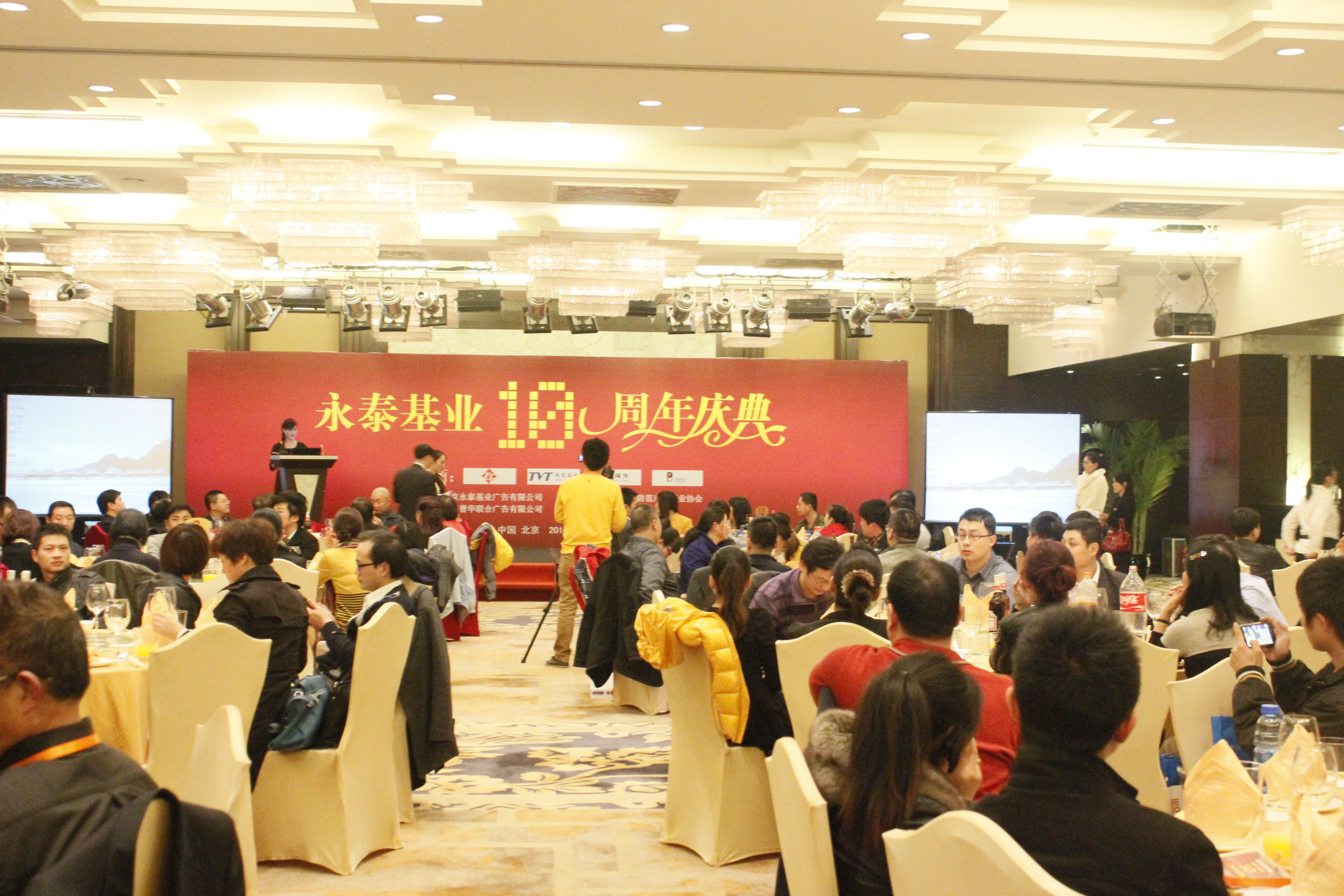 永泰基業(yè)于2013年4月2日(星期二)下午3點在北京中關(guān)村皇冠假日酒店(五星級)三樓皇冠宴會廳舉辦了永泰基業(yè)十周年慶典及答謝晚宴!中國安防協(xié)會副理事長 李華蓉先生為 此次會議致辭,原公安部科技局局長、中國安防協(xié)會副理事長、教授、司同軍先生,北京安全防范行業(yè)協(xié)會 副秘書長韓錦坤先生,北京市安全防范技術(shù)學會秘書長、原北京市公安局內(nèi)保局副局長、楊英女士,全國安防標準化技術(shù)委員會原秘書長、研究員、資深安防專家、劉希清先生,公安部安全與警用電子產(chǎn)品質(zhì)量檢測中心原主任、資深安防專家、李仲男先生,原公安部科技信息所情報室主任、北京安防協(xié)會顧問、高級工程師、董克賢女士到會祝賀。同時行業(yè)專家、安防廠商、經(jīng)銷商、工程商、系統(tǒng)集成商、安防行業(yè)相關(guān)人士等悉數(shù)參加。