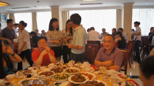 晚宴現(xiàn)場(chǎng)大家舉杯痛飲,歡聚一堂