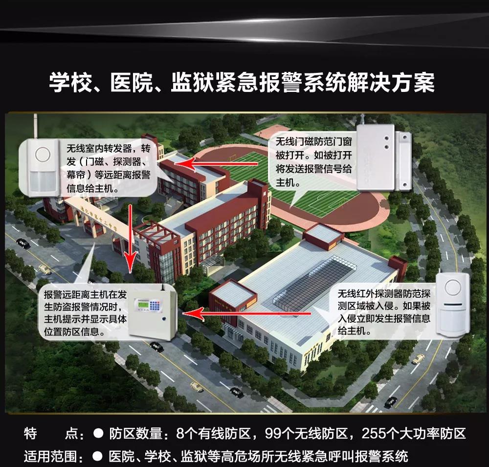 ◆ 遠(yuǎn)距離256個無線防區(qū),報警距離開闊地:3-10公里