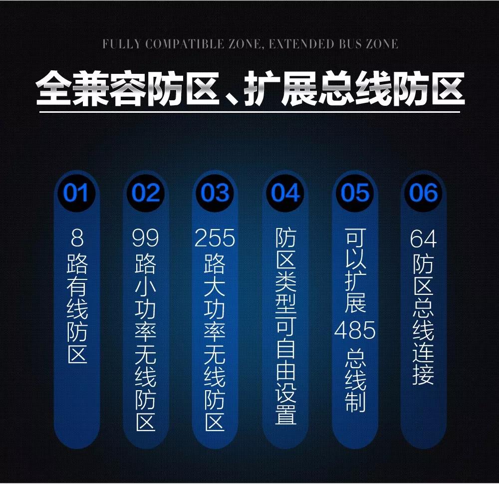 本款報警系統(tǒng)具有3種防區(qū)連接方式,有線防區(qū)、小功率無線防區(qū)、大功率無線防區(qū)的集成型報警主機(jī)。該主機(jī)具有多種功能,模組式設(shè)計(jì),支持功能擴(kuò)展,可以滿足工程商們的多種需求。