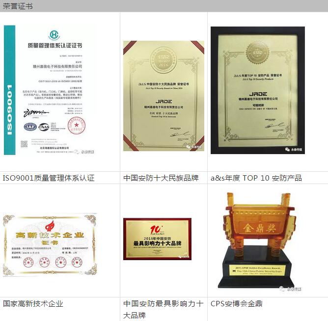 著眼于國內(nèi)和全球市場,嘉德公司從產(chǎn)品質(zhì)量以及管理體系上,都憑借精準(zhǔn)的產(chǎn)品定位、雄厚科研實(shí)力及良好市場信譽(yù),嘉德公司贏得廣大供應(yīng)商及客戶一致的認(rèn)可,先后榮獲“中國安防最具影響力十大品牌”、“中國安防十大民族品牌”、“中國國際社會(huì)公共安全博覽會(huì)金鼎獎(jiǎng)”、“中國安全防范產(chǎn)品行業(yè)協(xié)會(huì)會(huì)員”、”深圳市安全防范行業(yè)協(xié)會(huì)副會(huì)長單位”等榮譽(yù)。