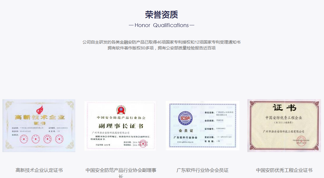 廣州市浩云安防科技股份有限公司,是一家專業(yè)從事金融安防產(chǎn)品研發(fā)、生產(chǎn)、銷售的高新技術(shù)企業(yè)。公司成立于2001年3月8日,現(xiàn)注冊資本為8000多萬元,于2015年成功上市,證券簡稱為“浩云科技”,證券代碼為“300448”,是國家高新技術(shù)企業(yè),擁有安防企業(yè)技防壹級(jí)資質(zhì),建筑智能化工程設(shè)計(jì)與施工貳級(jí)資質(zhì),計(jì)算機(jī)信息系統(tǒng)集成資質(zhì),是中國安全防范產(chǎn)品行業(yè)協(xié)會(huì)副理事長單位,全國安全防范報(bào)警系統(tǒng)標(biāo)準(zhǔn)化技術(shù)委員會(huì)委員單位,中國通信工業(yè)協(xié)會(huì)物聯(lián)網(wǎng)應(yīng)用分會(huì)副理事長單位,參與制定了公共安全方面的多項(xiàng)國家及行業(yè)標(biāo)準(zhǔn)。